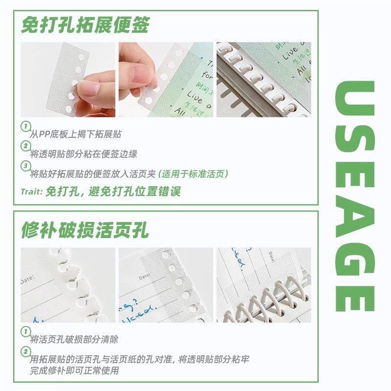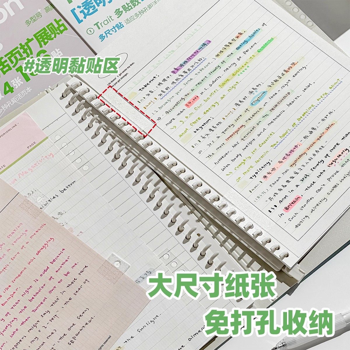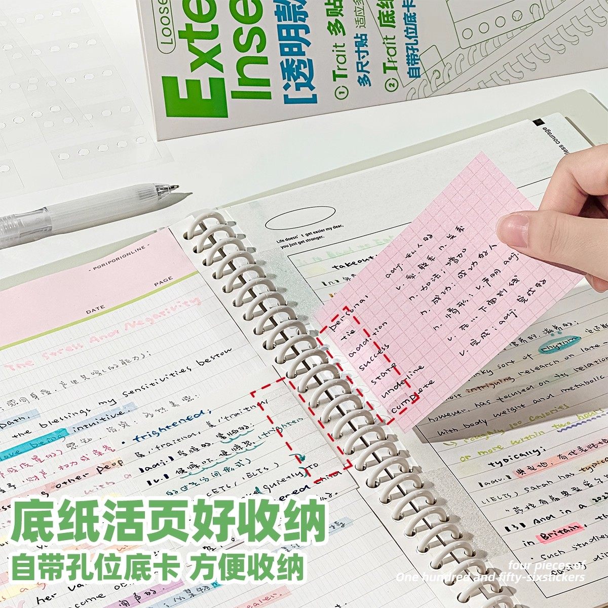 透明活页拓展贴多尺寸便签本可粘贴多孔位索引贴外挂便利贴高颜值学生学习记事贴免打孔贴纸隐形内页文具用品