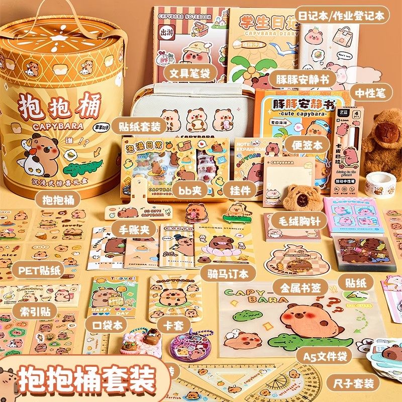 卡皮巴拉文具手帐套装抱抱桶2026女生手账礼盒小学生学习用品大礼包高颜值女童生日礼物高级感伴手礼奖励女孩