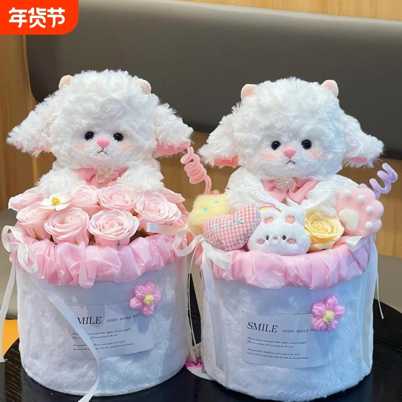 可爱生日小羊玩偶娃娃公仔花束生日礼物送女生女朋友闺蜜圣诞节
