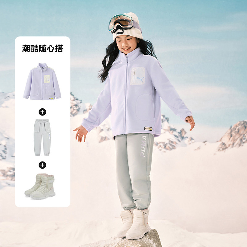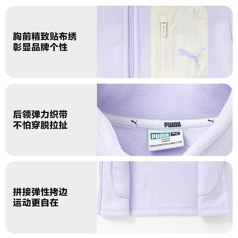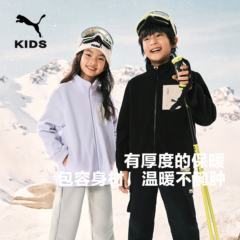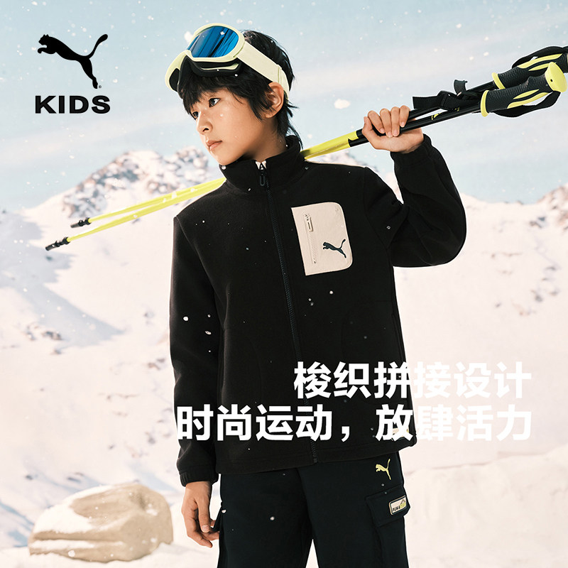PUMA彪马童装新款儿童针织便服双面加绒外套奥粒绒复合摇粒绒上衣