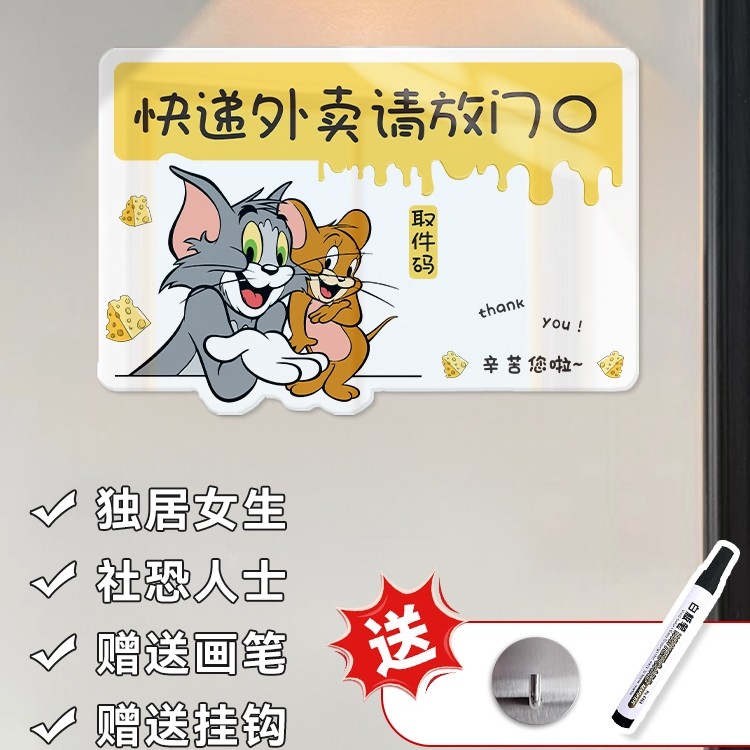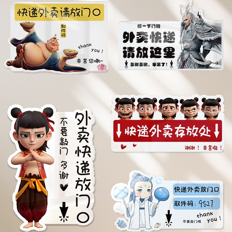外卖快递放门口指示牌取件码提示牌不要请勿敲门神器家用高级可爱门牌号竖版入户门装饰挂钩可爱小狗蜡笔小新