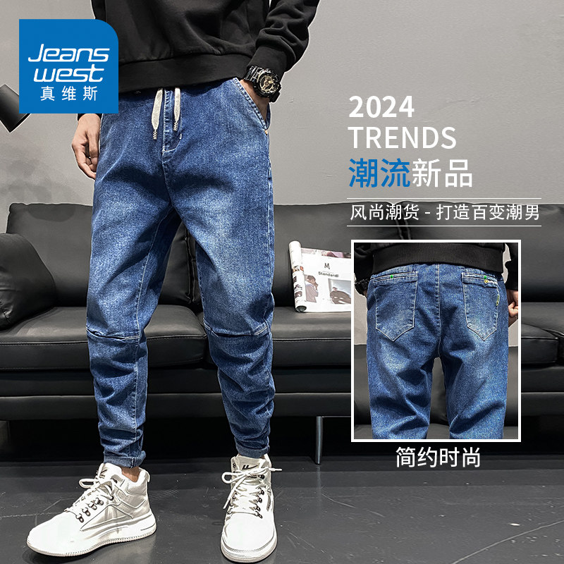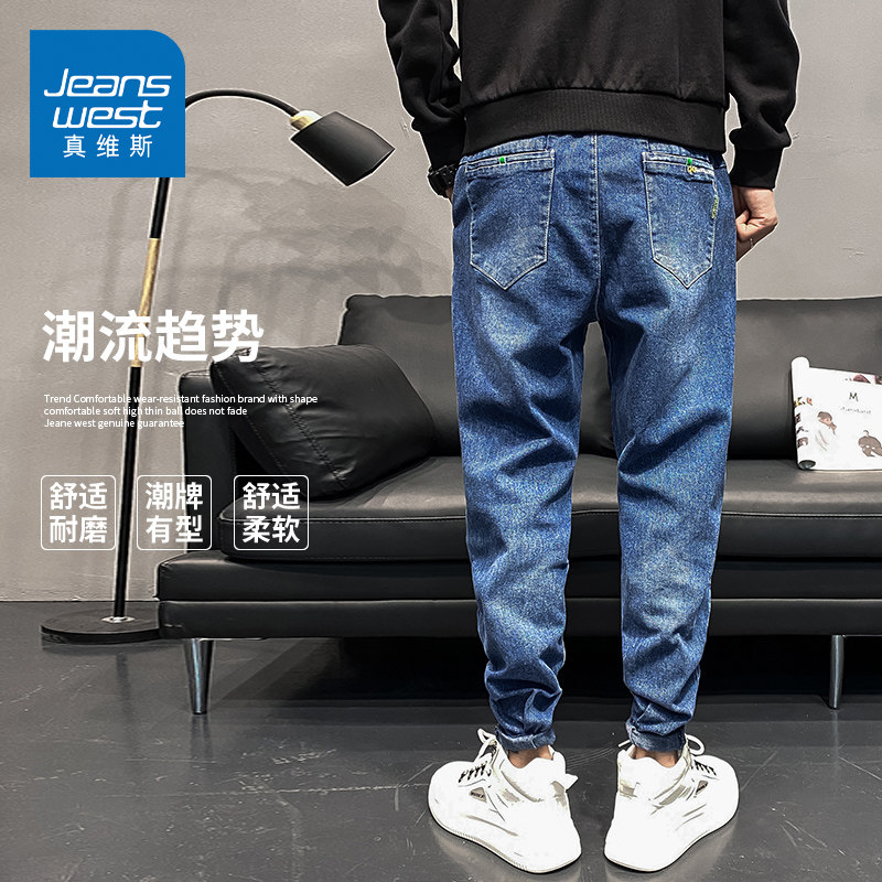 森柔牛仔森马牛仔裤男小脚裤复古水洗长裤夏季裤子直筒显高显腿长