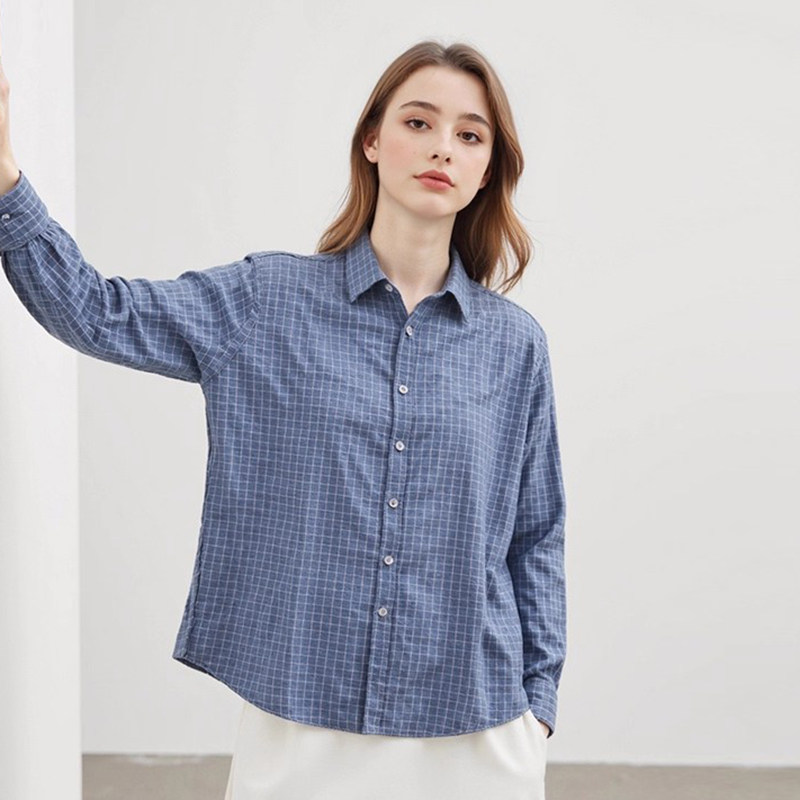 【H家】撤标撤柜!2025春秋新款女时尚经典格纹亲肤休闲长袖衬衫