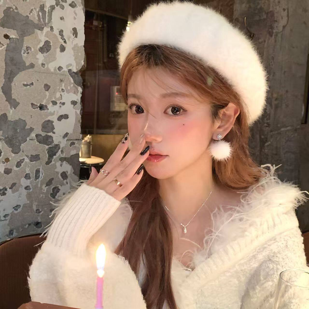 法式精致白色毛球耳钉耳夹女新款轻奢高级感耳环超仙绝美秋冬耳饰
