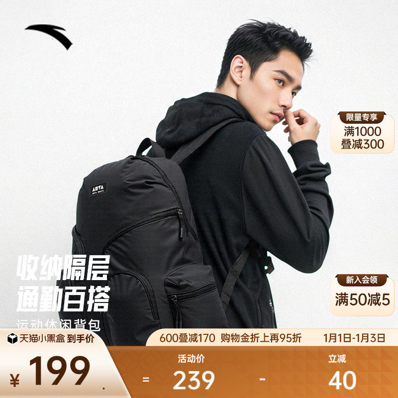 安踏双肩包旅行背包露营出差通勤露营大容量耐磨多隔层旅游电脑包