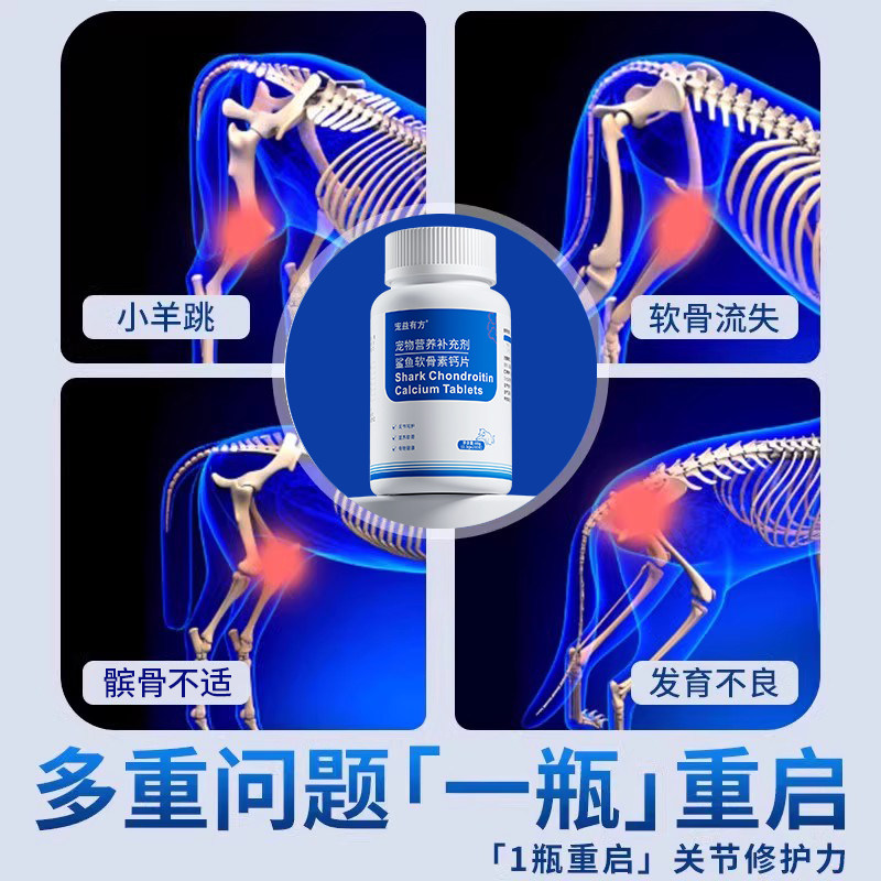 鲨鱼软骨素钙片狗狗猫咪宠物专用健骨关节舒补钙大中小型维生素