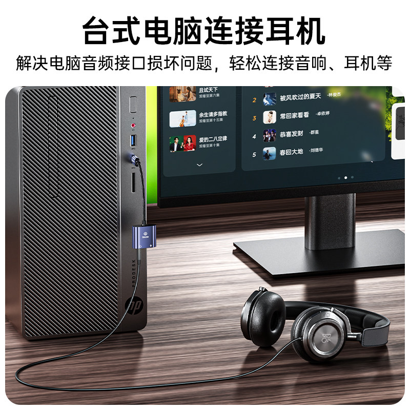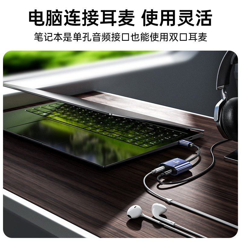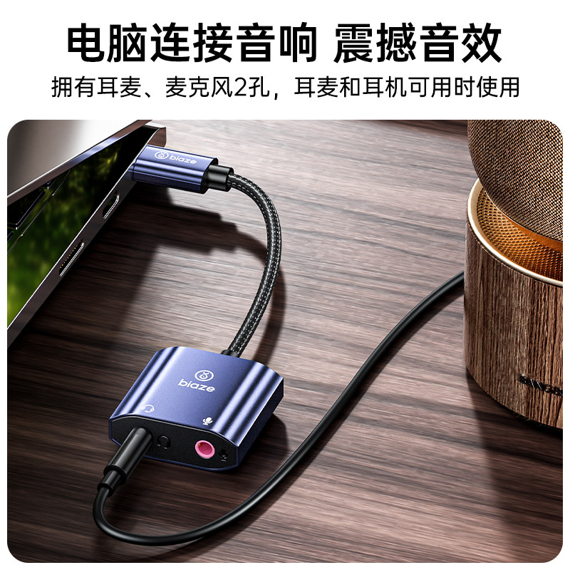 毕亚兹typec外置声卡3.5mm耳机麦克风转接头笔记本电脑转换器音响