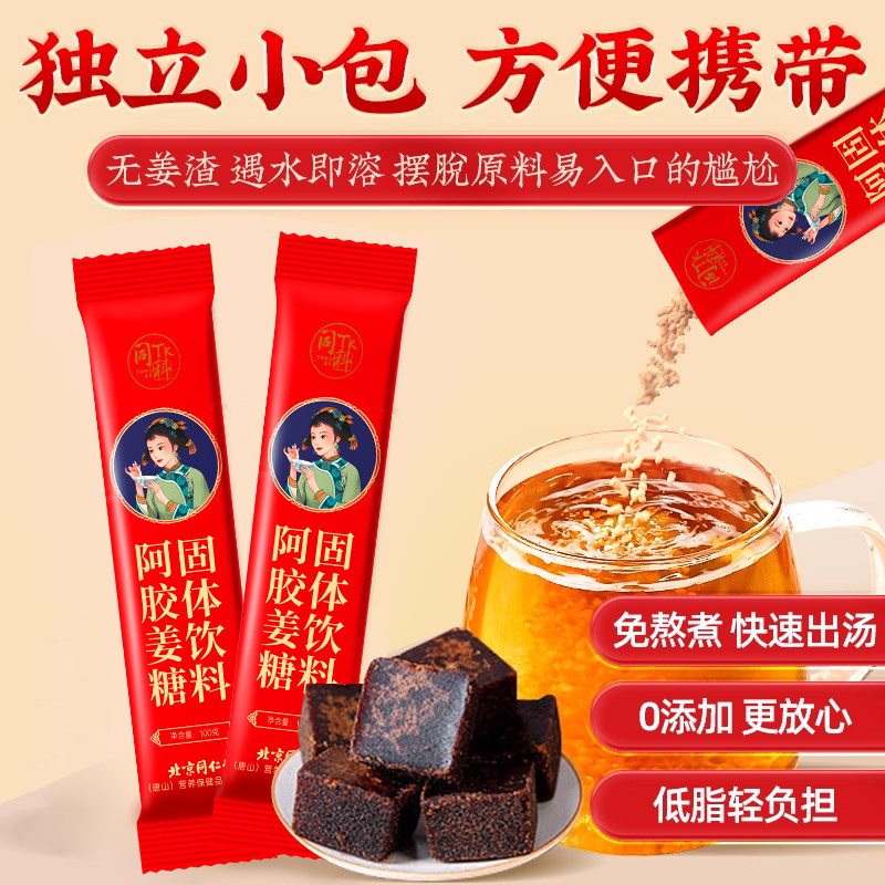 同仁堂红糖姜茶大姨妈阿胶生姜汤官寒调理痛经补气单独小包装暖胃