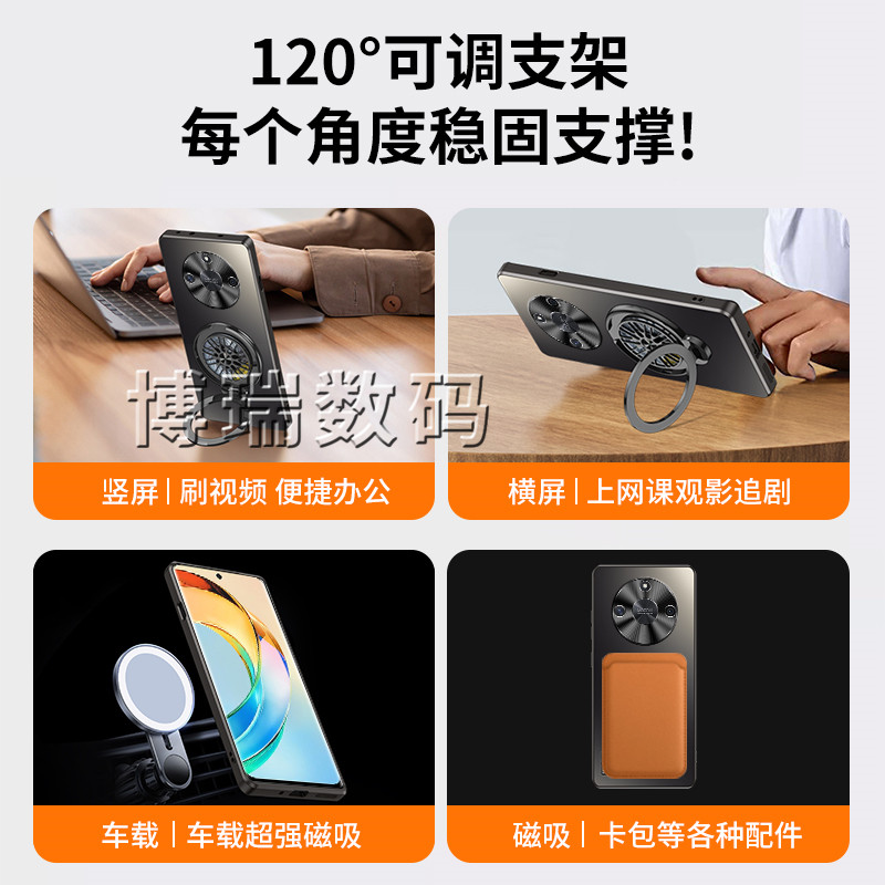 适用荣耀x60手机壳新款X60Pro手机套磁吸旋转陀螺解压支架金属镜头保护壳全包防摔男士女磨砂散热软壳高档por