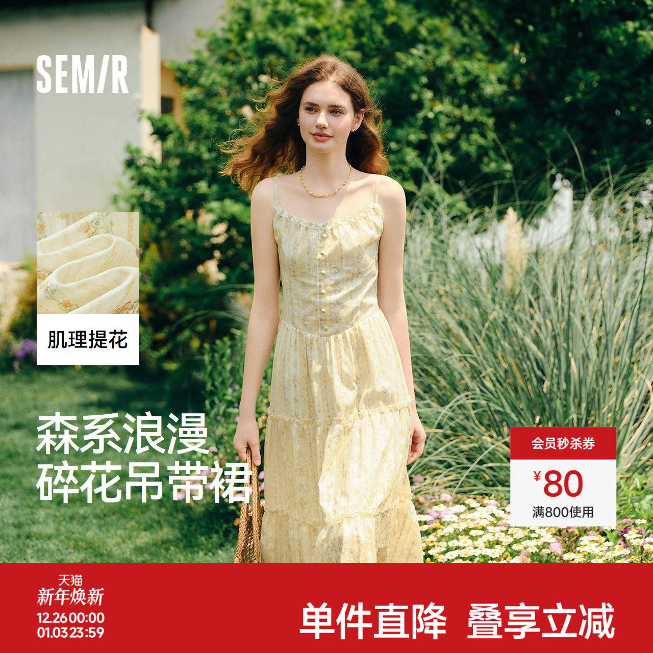 森马连衣裙女设计感肌理浪漫2025新款夏季甜美花边碎花吊带裙森系