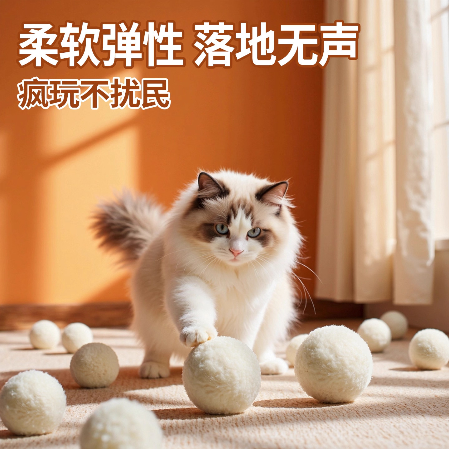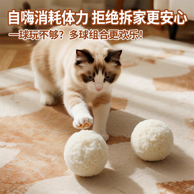 猫咪玩具静音羊毛球自嗨解闷神器小猫幼猫消耗体力逗猫棒宠物用品