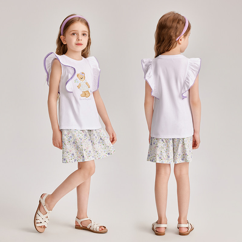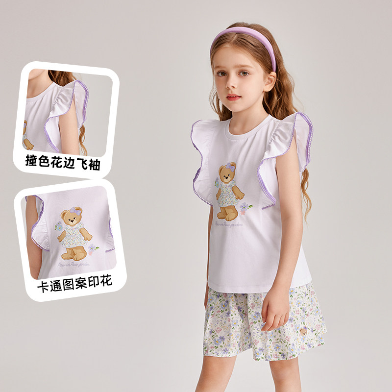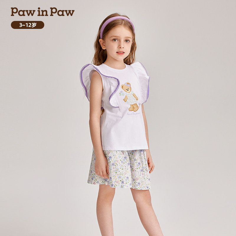 PawinPaw卡通小熊童装夏季女童小飞袖短袖T恤儿童套装