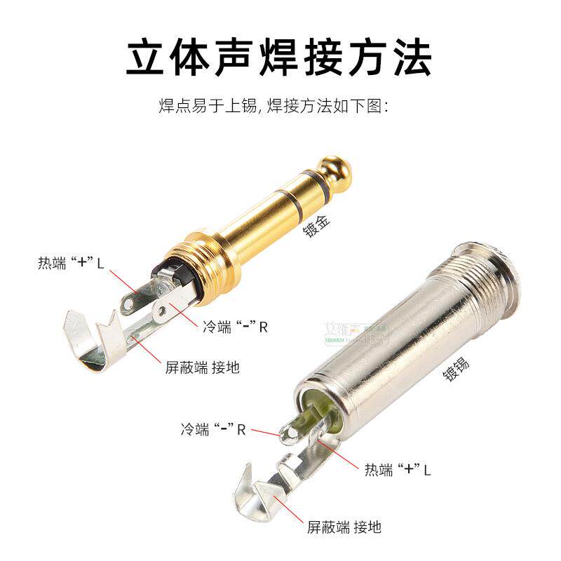 REAN大三芯立体声二芯单声道6.5直插头吉他线话筒麦线乐器接插件