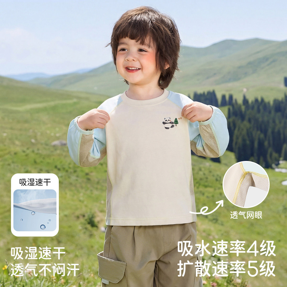 【速干】咕噜日记童装儿童T恤女童透气长袖体恤男童上衣春夏薄款