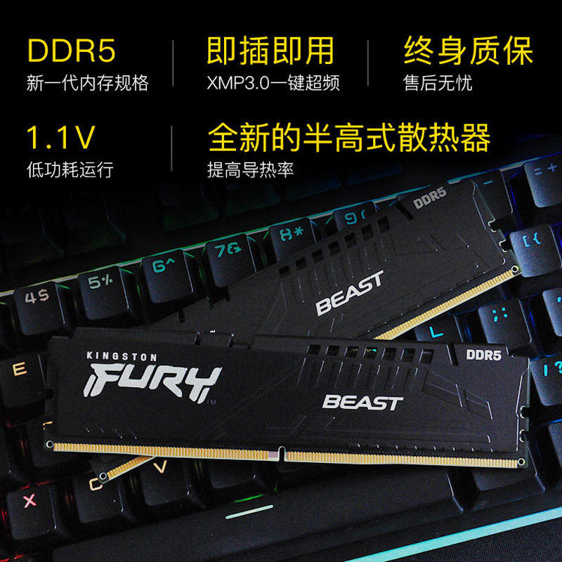 金士顿DDR5内存16G/32G 6000/6400台式机电脑内存条 超级野兽系列