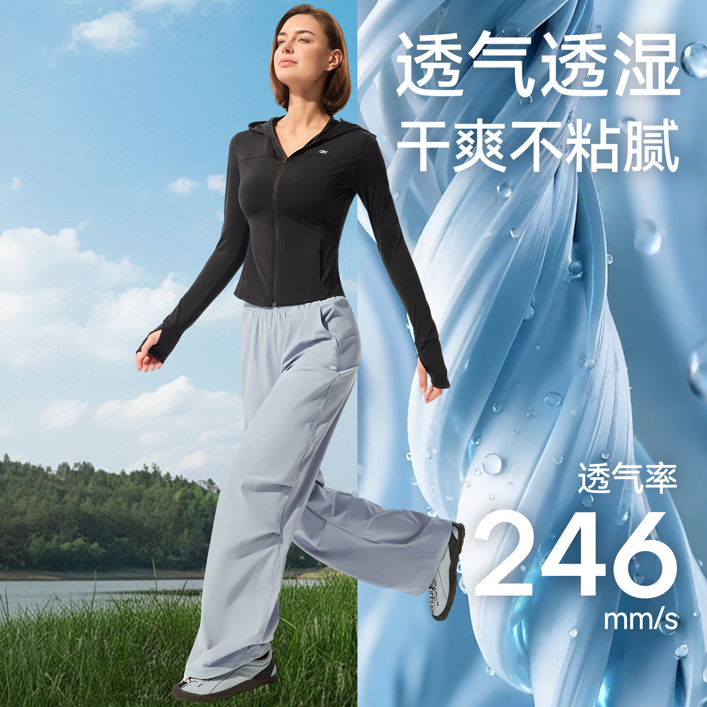 SIINSIIN直筒裤女春夏防晒裤薄款休闲显瘦速干运动裤黑色阔腿裤子
