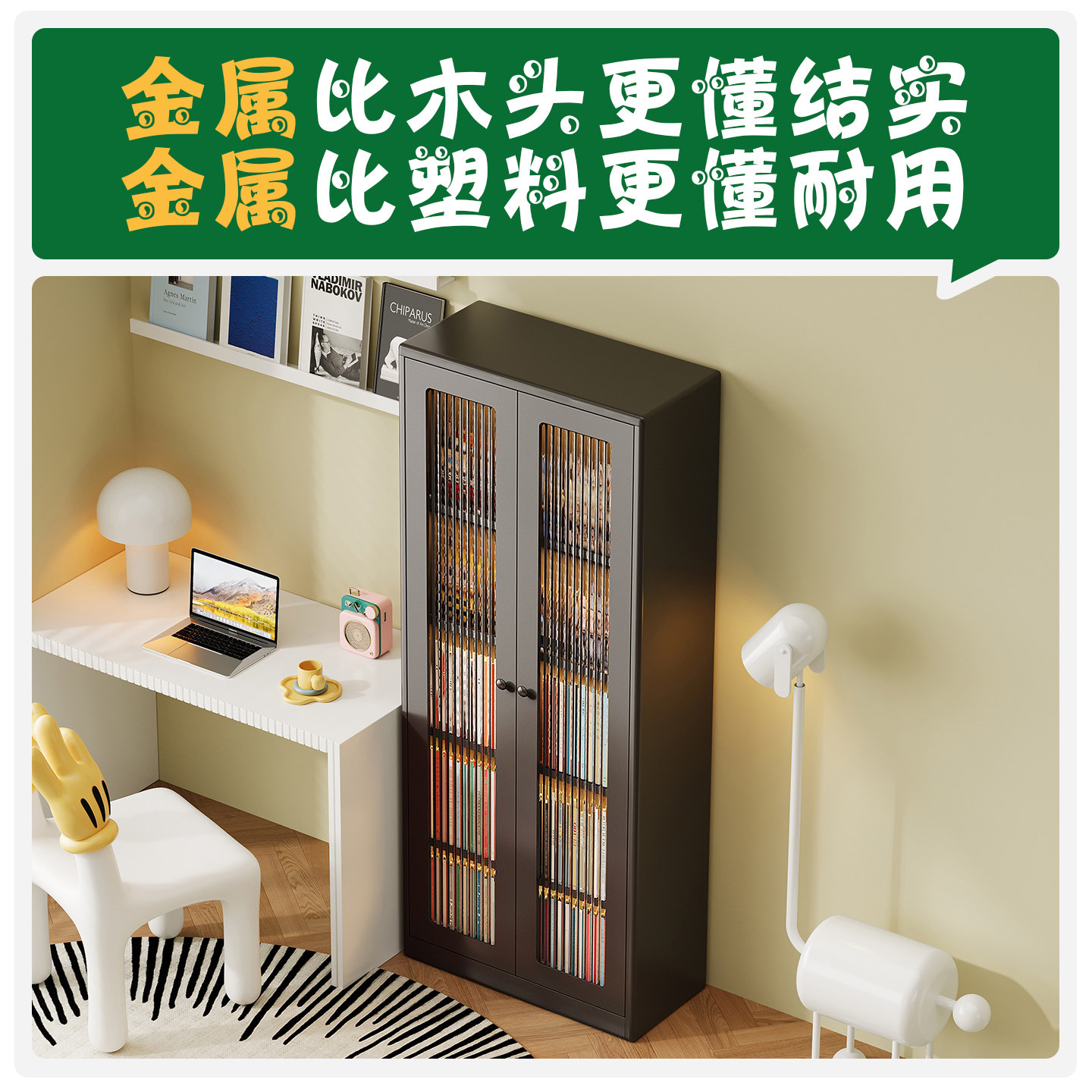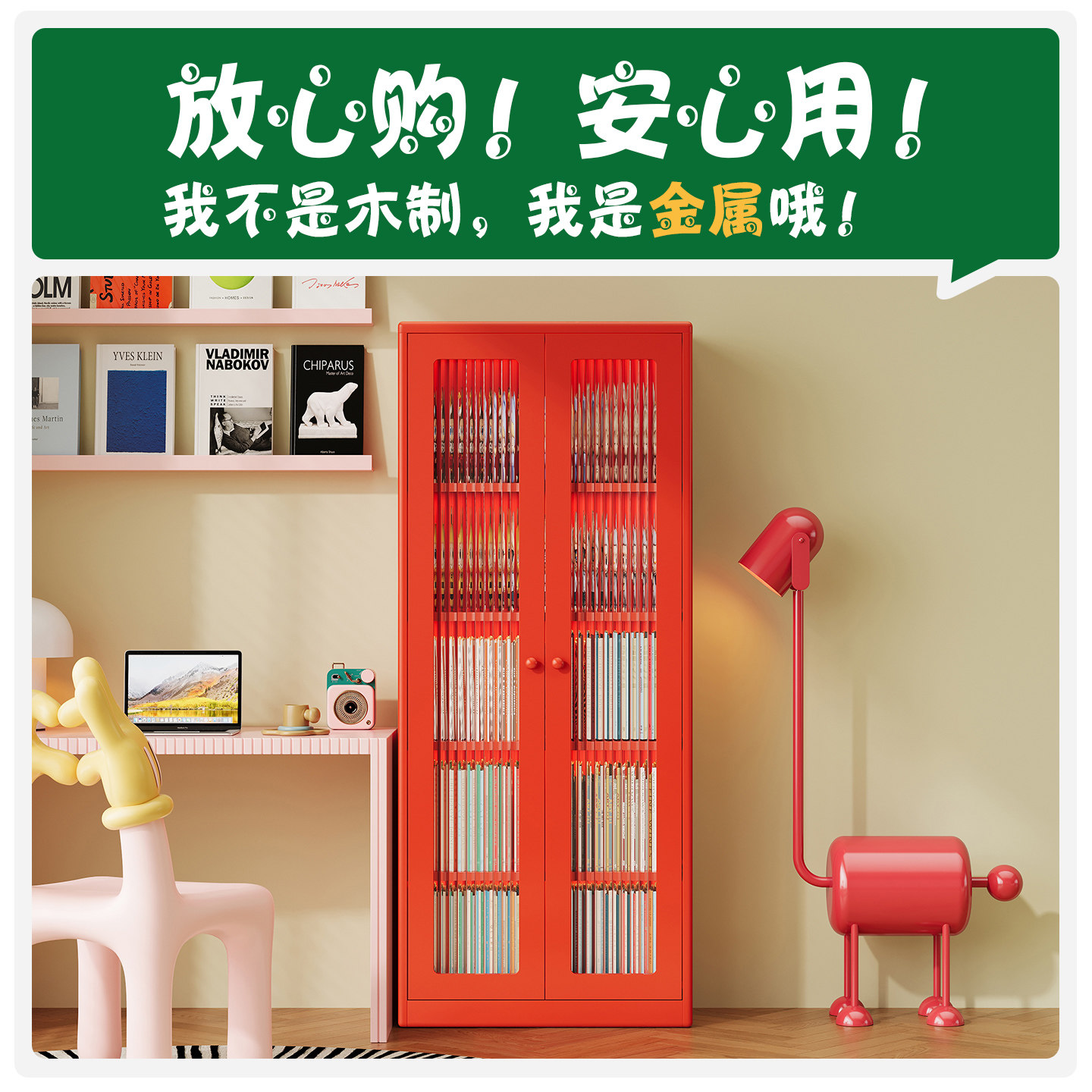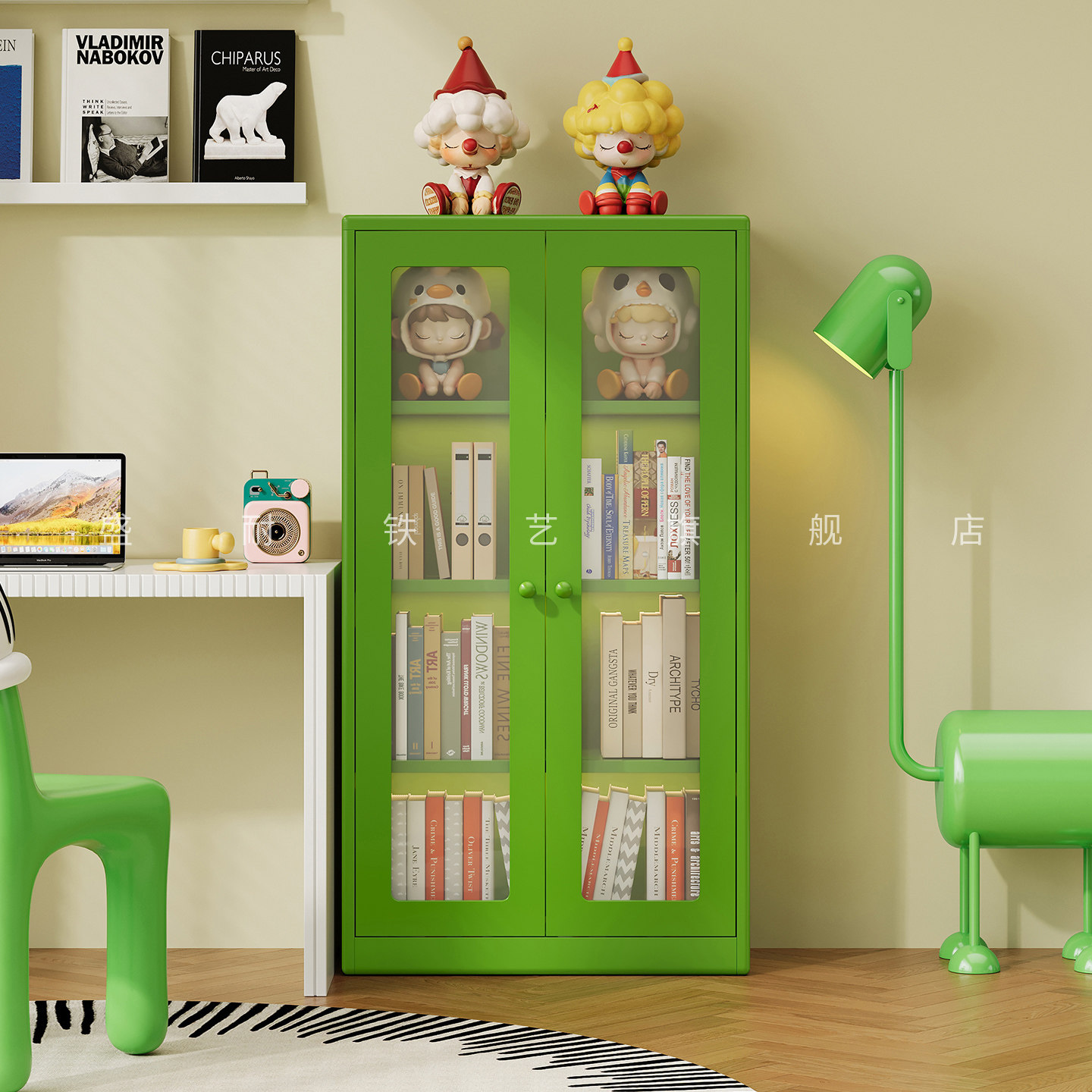 中古风儿童书柜小户型住宅客厅角落书架储物柜卧室墙角展示置物柜