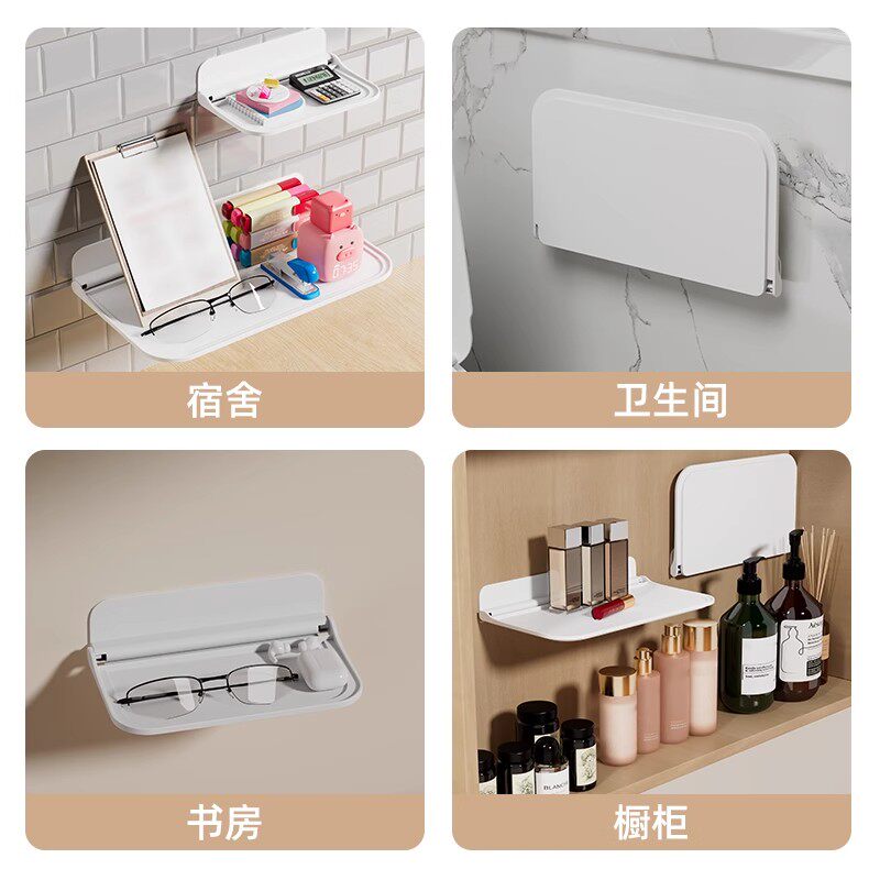 可折叠墙上置物架卫生间浴室宿舍床头边免打孔壁挂式收纳架壁挂架
