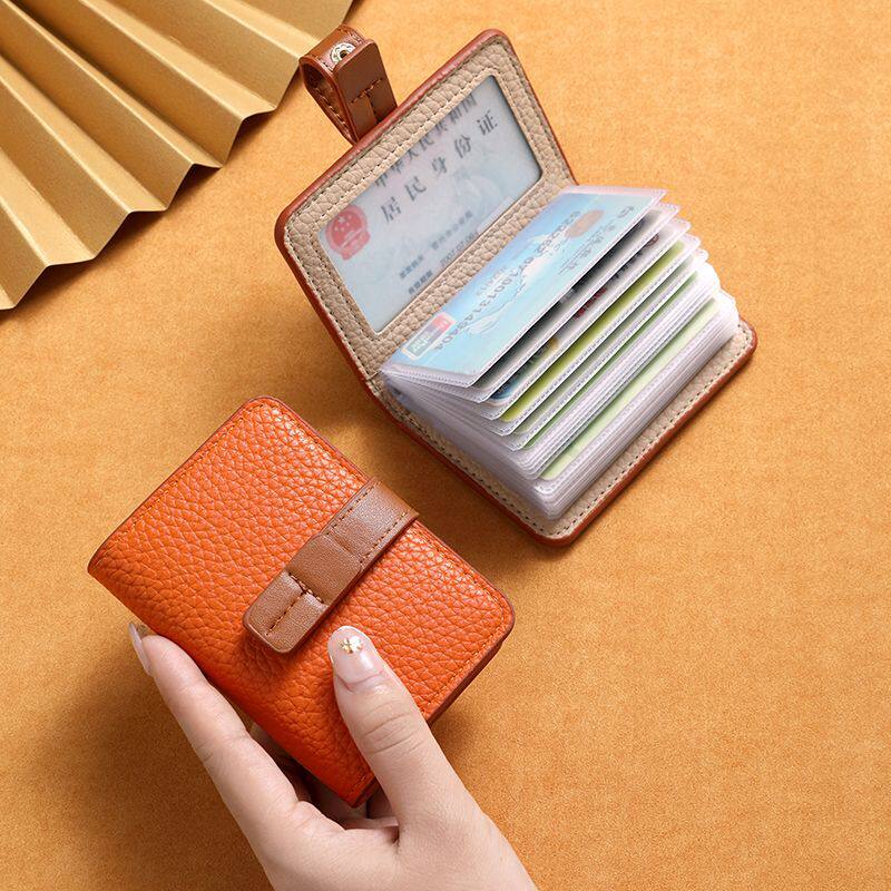ELLE女包头层牛皮证件票夹牛皮卡包mini手持零钱隔层卡包多层卡夹