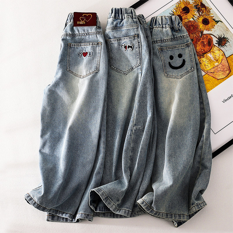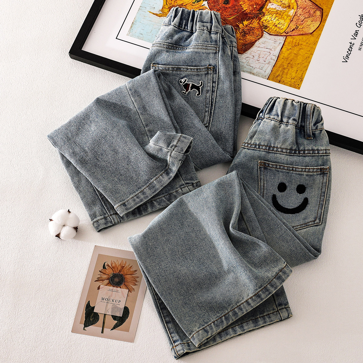蔚未来女童牛仔裤春秋款洋气裤子儿童时髦阔腿裤女大童韩版直筒裤