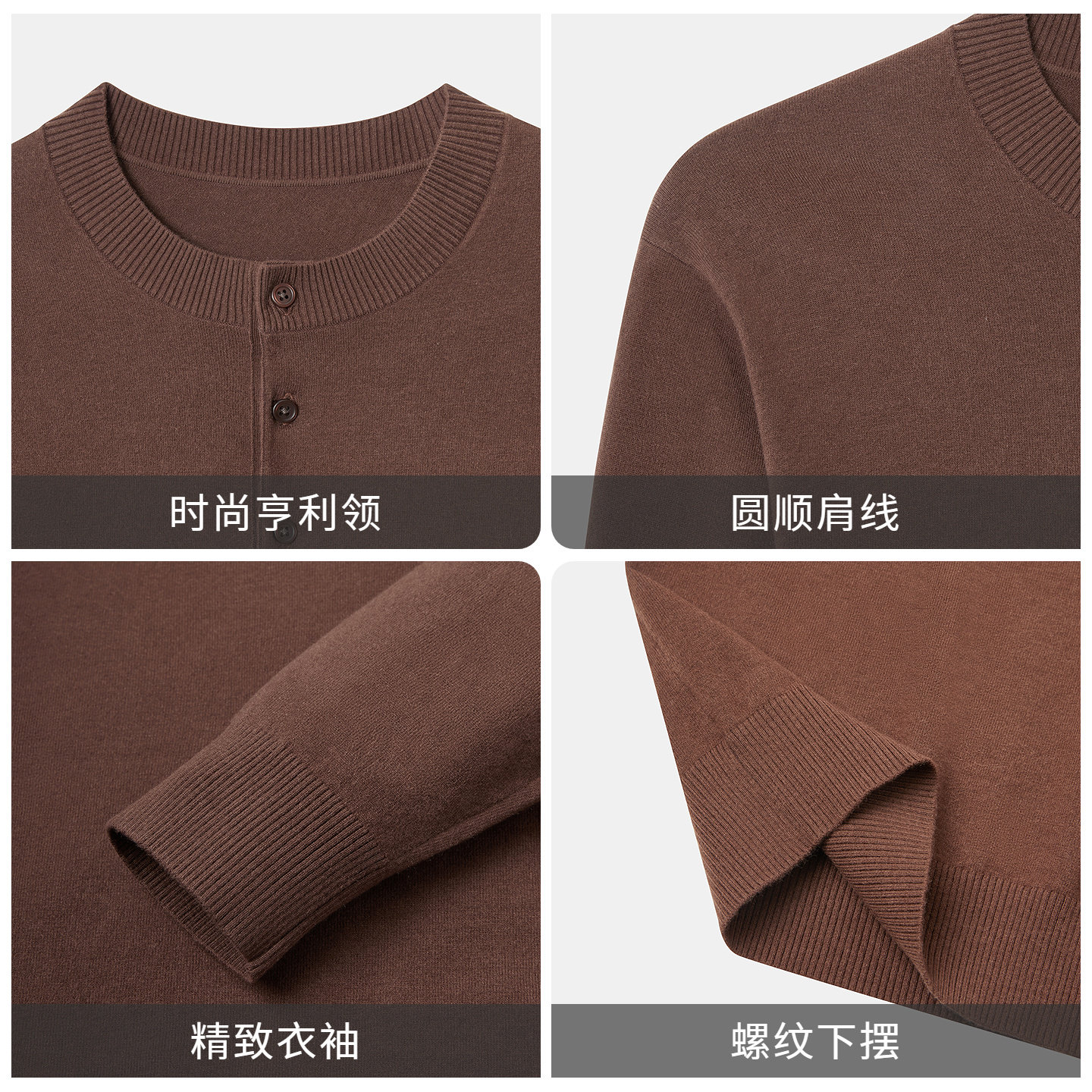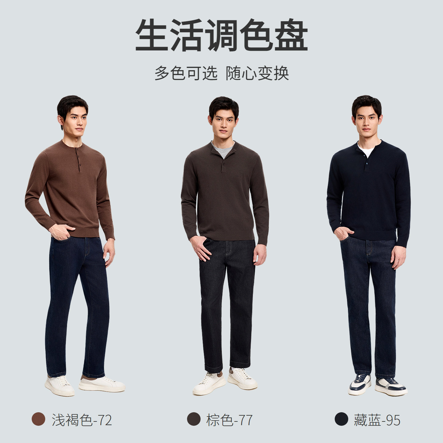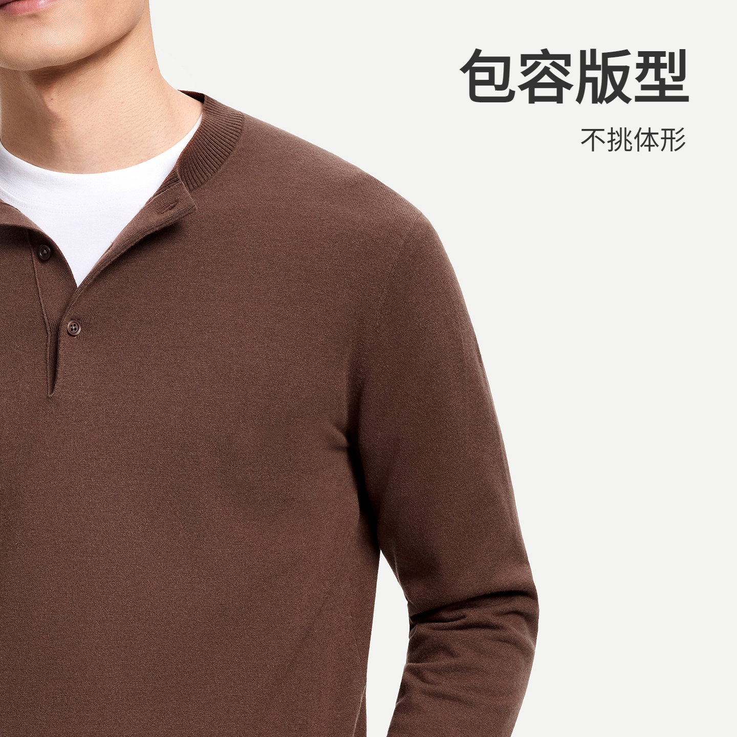 【软糯羊绒】金利来秋冬新款男士长袖针织衫纯色亨利领套头毛衣