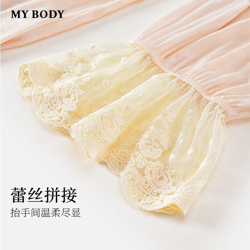 商场同款MYBODY春季新款睡衣女甜美蕾丝拼接荷叶边收褶家居服套装