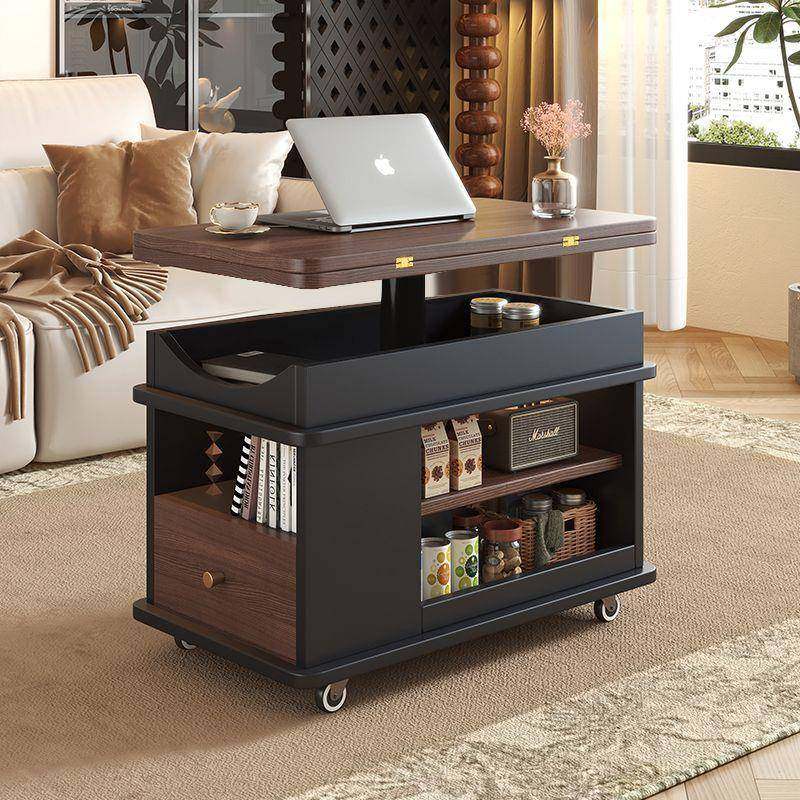 移动茶几客厅小户型沙发实木边柜多功能折叠升降小推车家用茶桌