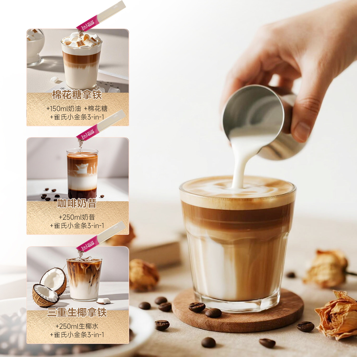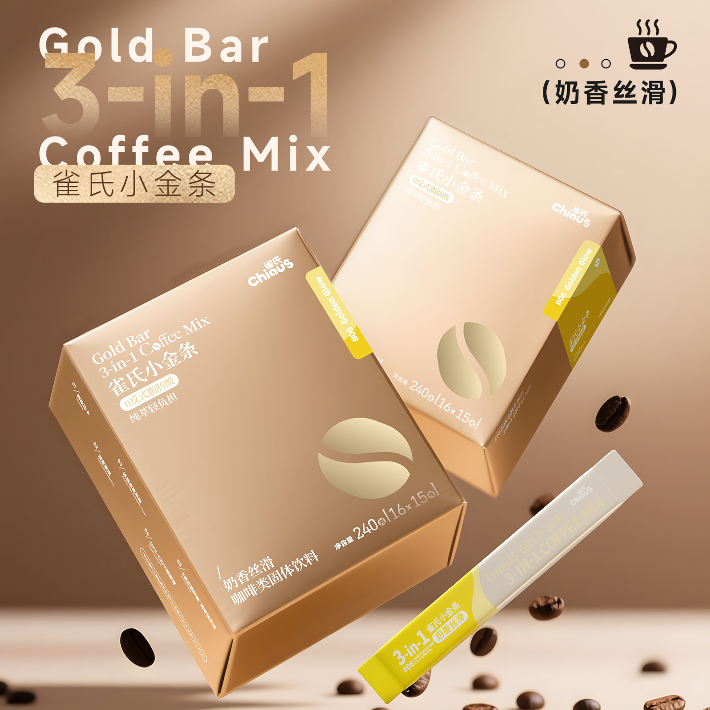 雀氏小金条三合一速溶咖啡粉浓郁醇香原味拿铁奶香丝滑提神醒脑