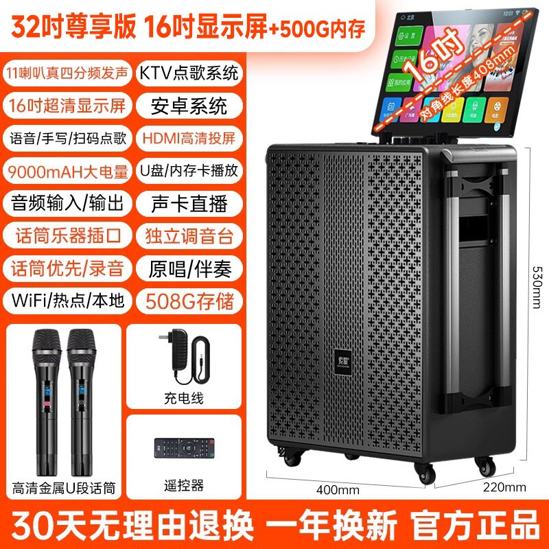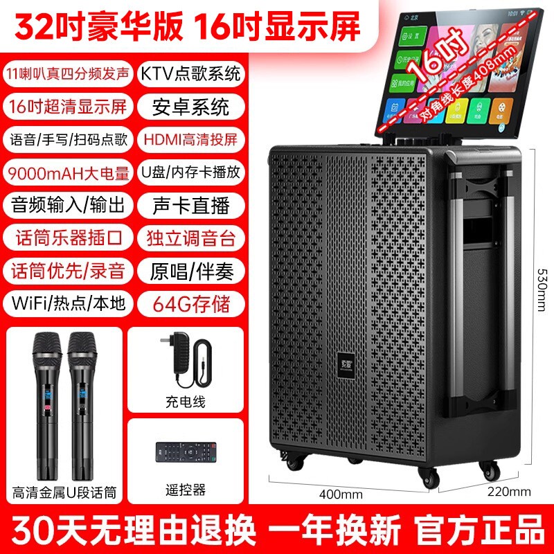 索爱广场舞音响带显示屏户外点唱歌一体机家庭ktv音箱套装点歌机k