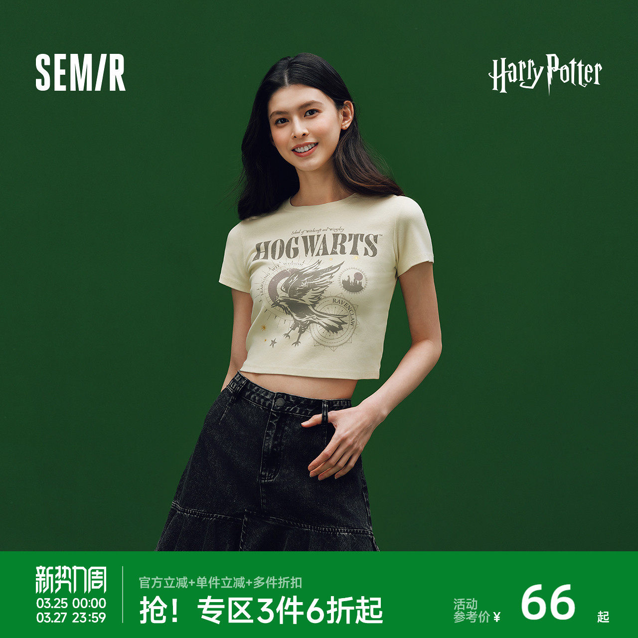森马哈利波特联名短袖T恤女夏短款图案印花做旧修身炸街复古上衣