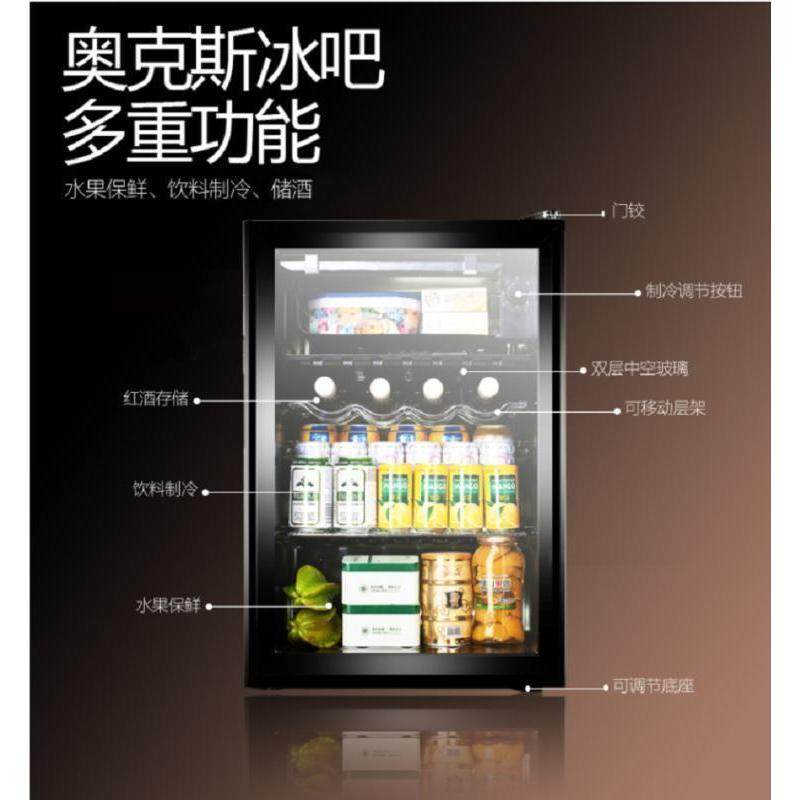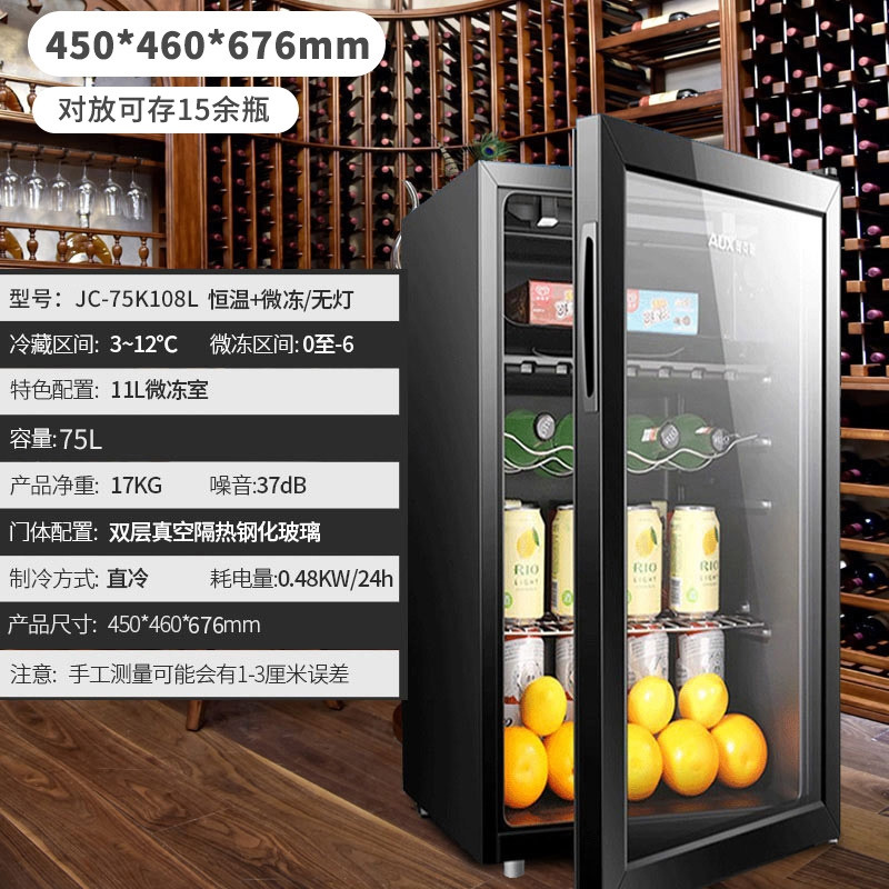 AUX/奥克斯75L升家用冷藏冰吧大小型恒温酒柜玻璃门展示茶叶冰箱