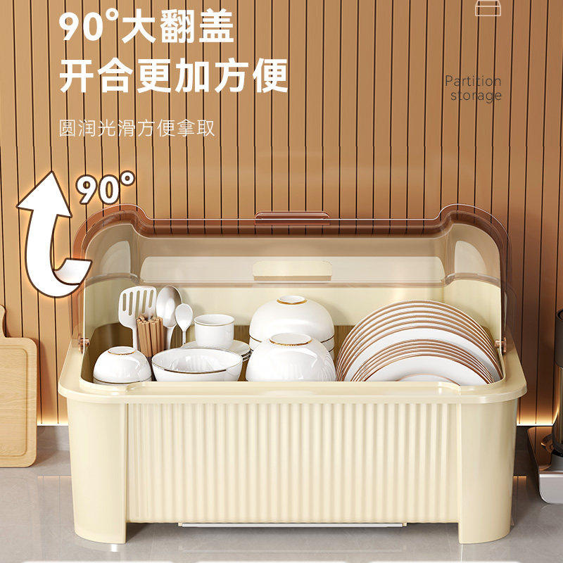 碗筷收纳盒带盖放餐具装盘子的置物架家用厨房沥水碗柜塑料储物箱