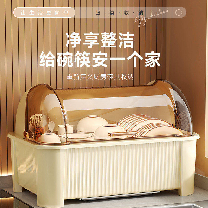 碗筷收纳盒放碗碟收纳架厨房家用多功能带盖沥水置物架碗柜收纳箱