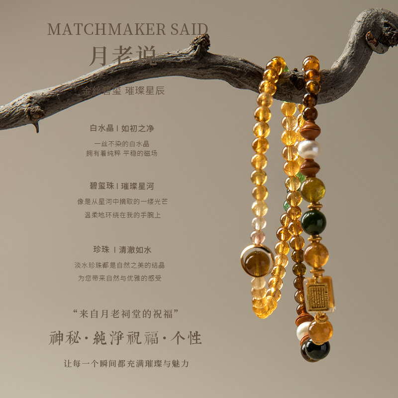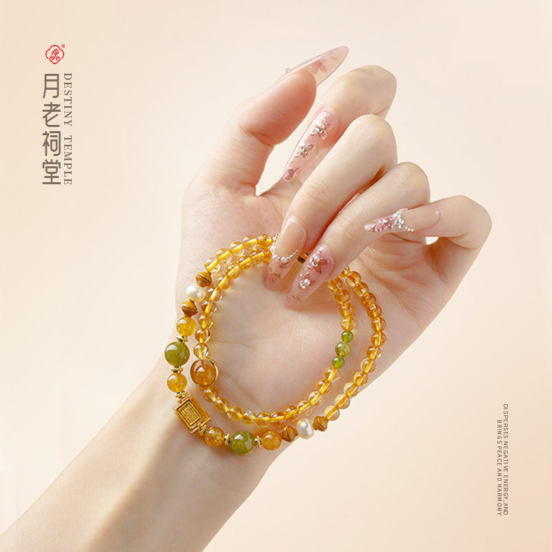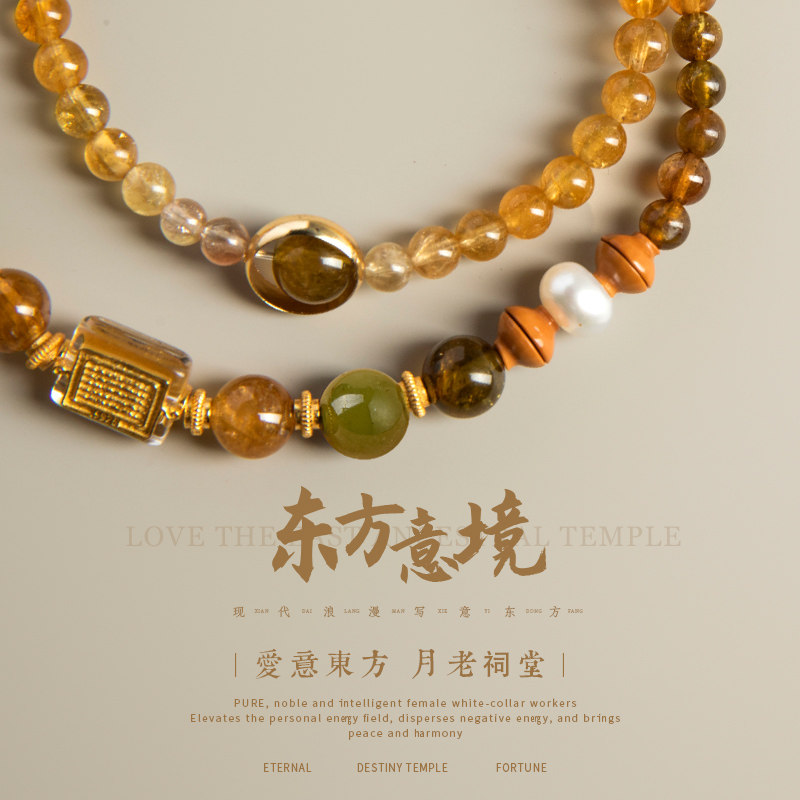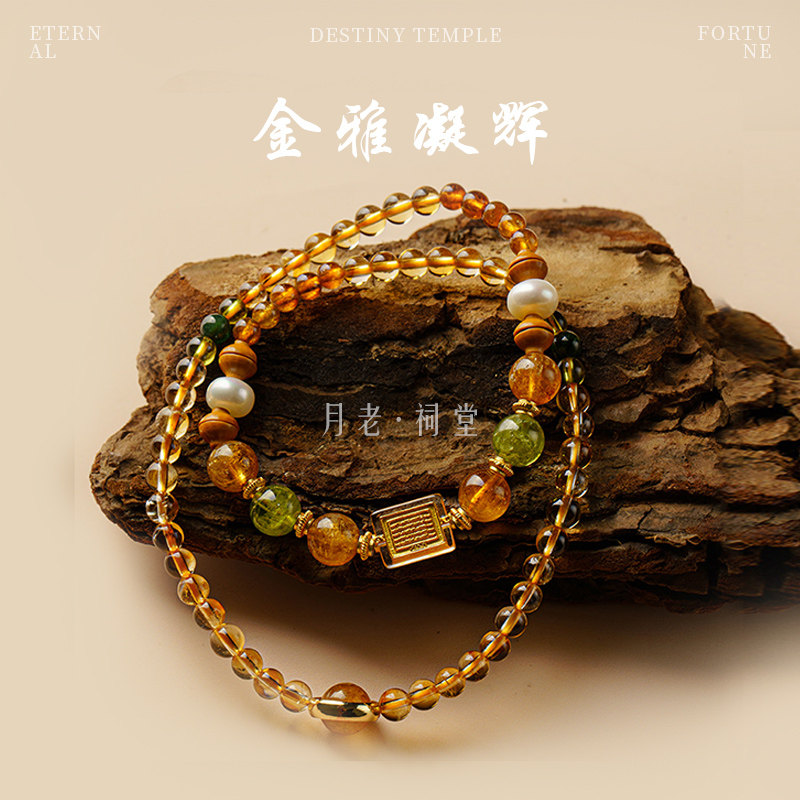 月老祠堂金丝碧玺黄水晶手链女高小众设计轻奢叠戴手串女珠宝双圈