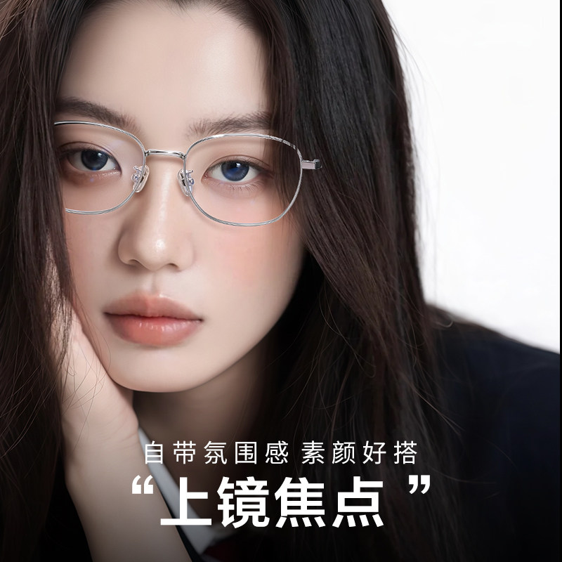 普莱斯银框眼镜高度近视女度数可配超轻小框架素颜防蓝光专业配镜