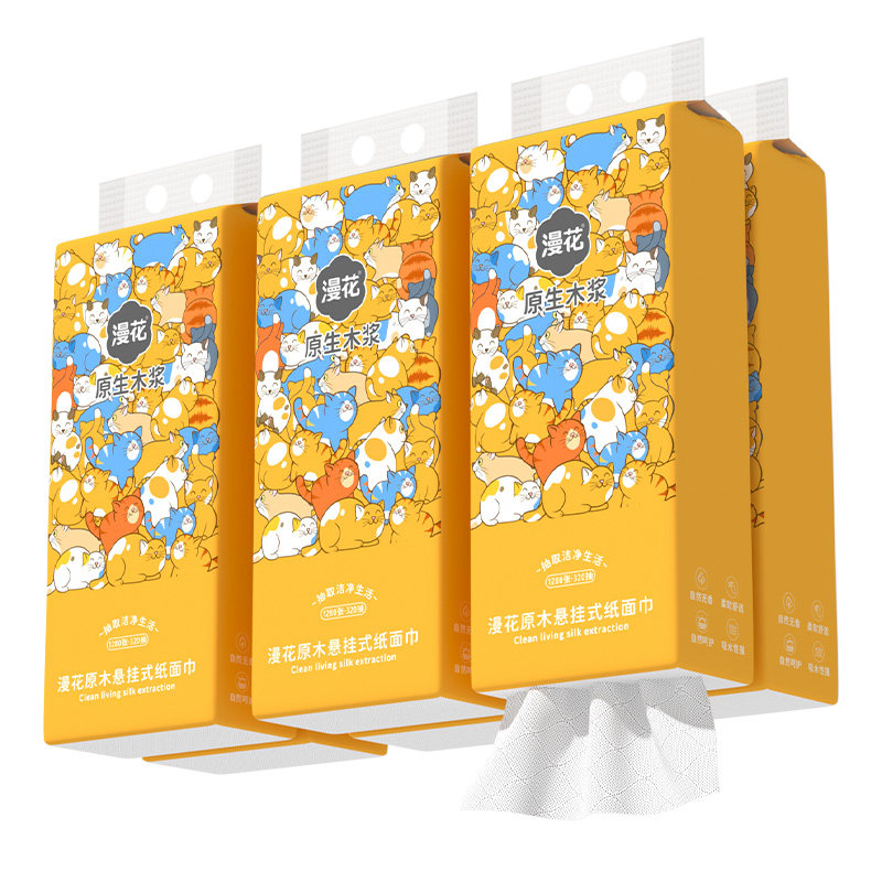 漫花悬挂式卫生纸整箱批发囤货家用实惠原生木浆抽纸面巾纸餐巾纸