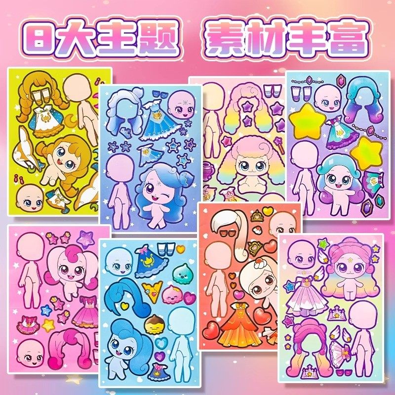 奇妙萌可换装贴纸2025新款儿童女孩卡通创意粘贴玩具高颜值反复贴