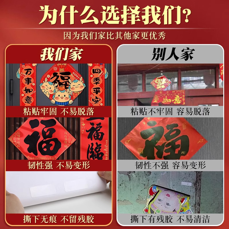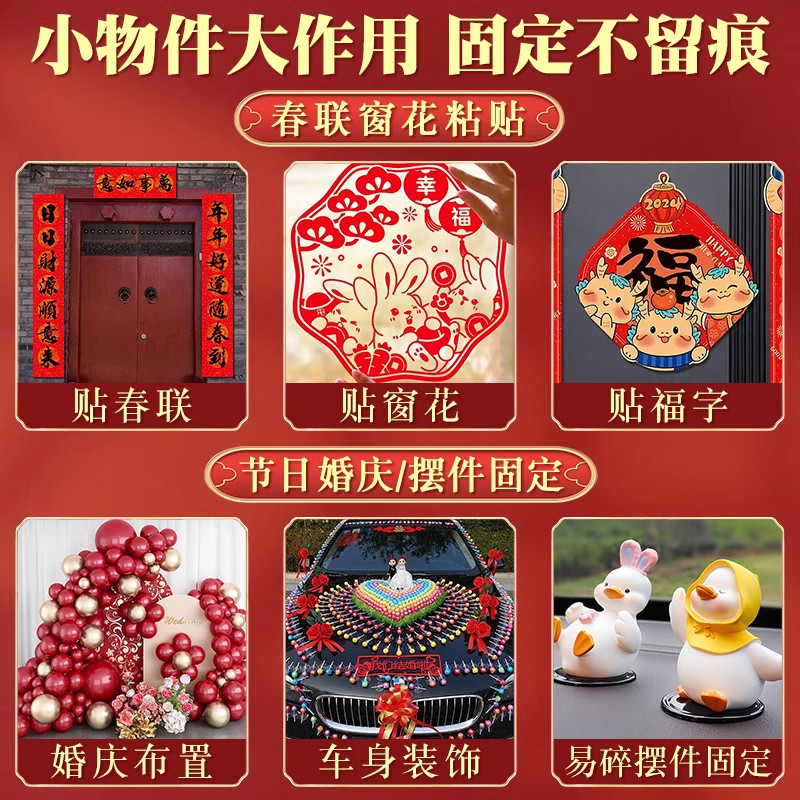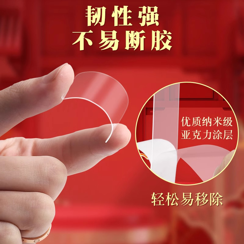春联专用无痕双面胶贴粘对联胶带多功能纳米双面胶透明贴贴片高粘度强力易撕贴粘婚庆婚车喜字装饰固定墙面贴