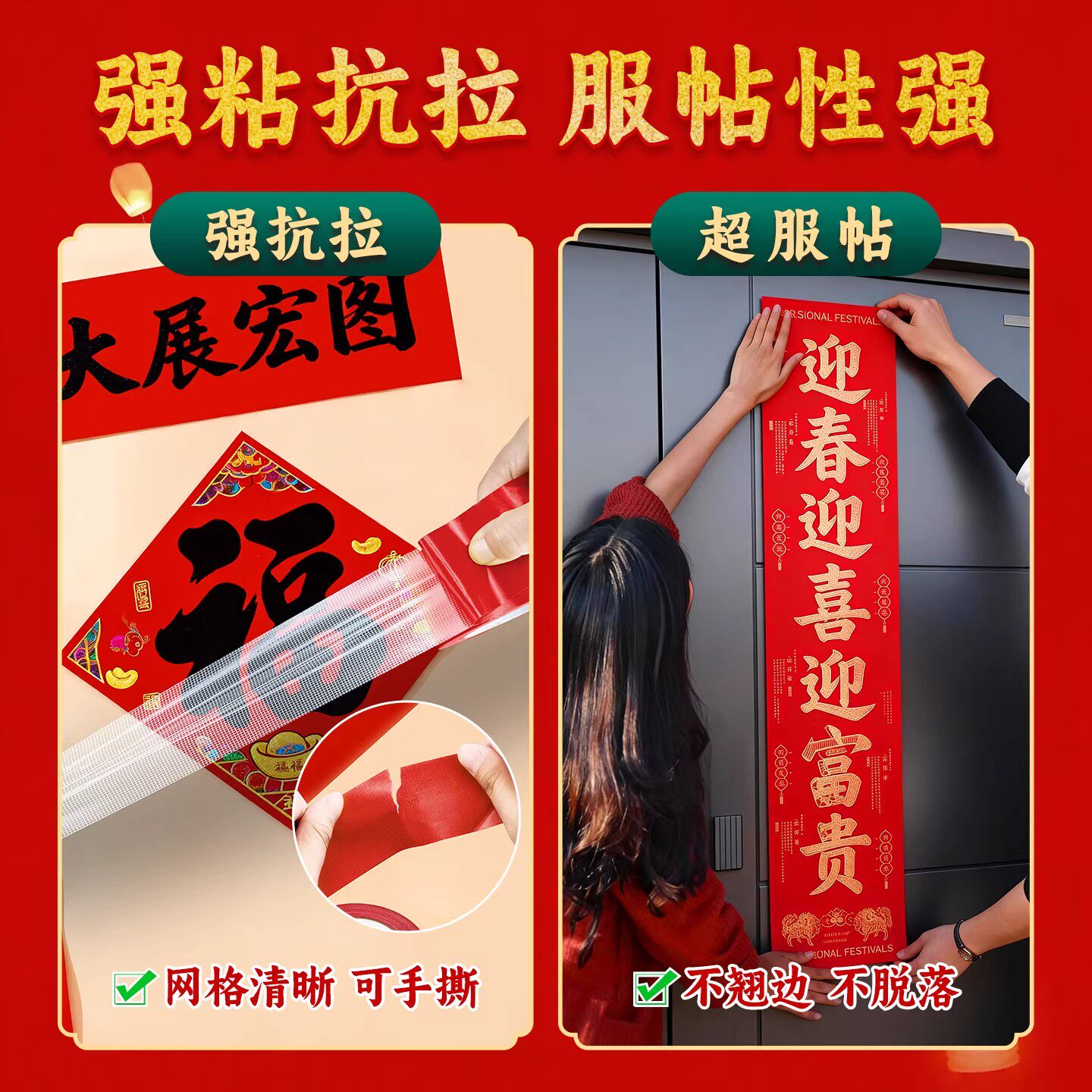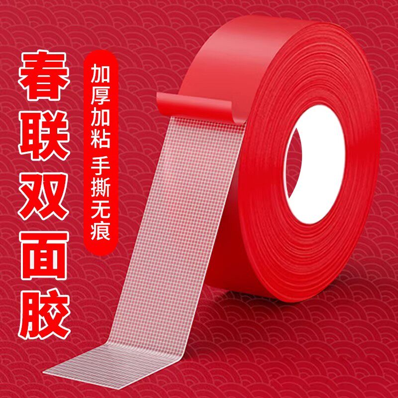 贴春联对联婚庆展会庆布置摆件固定红色布基双面胶带超强粘力不留痕网格地毯神器耐高温新年新春必备神器