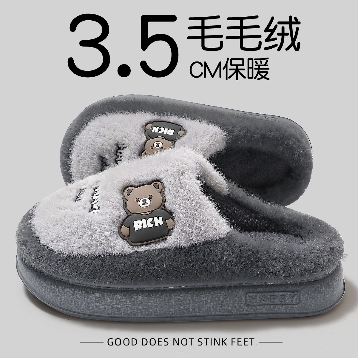 红豆买一送一情侣棉拖鞋男女款冬季2025新款毛绒保暖居家室内棉拖