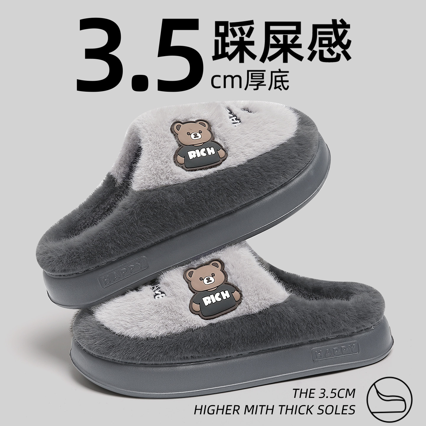 亚束棉拖鞋男士破茧外穿厚底增高情侣大码室内居家冬季保暖女新款