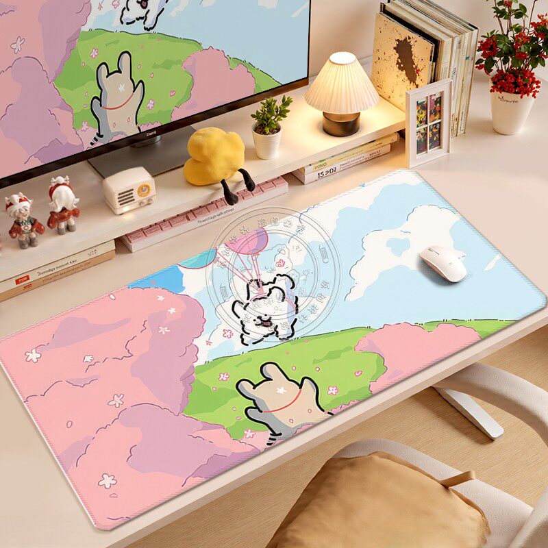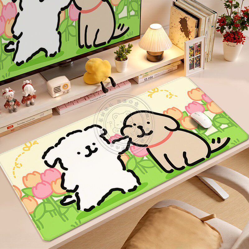 线条小狗鼠标垫超大女生可爱笔记本电脑键盘大号定制桌垫耐脏家用