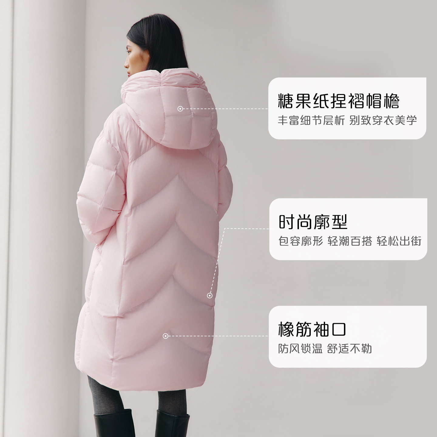 糖果纸捏褶帽檐、时尚廓形、橡筋袖口