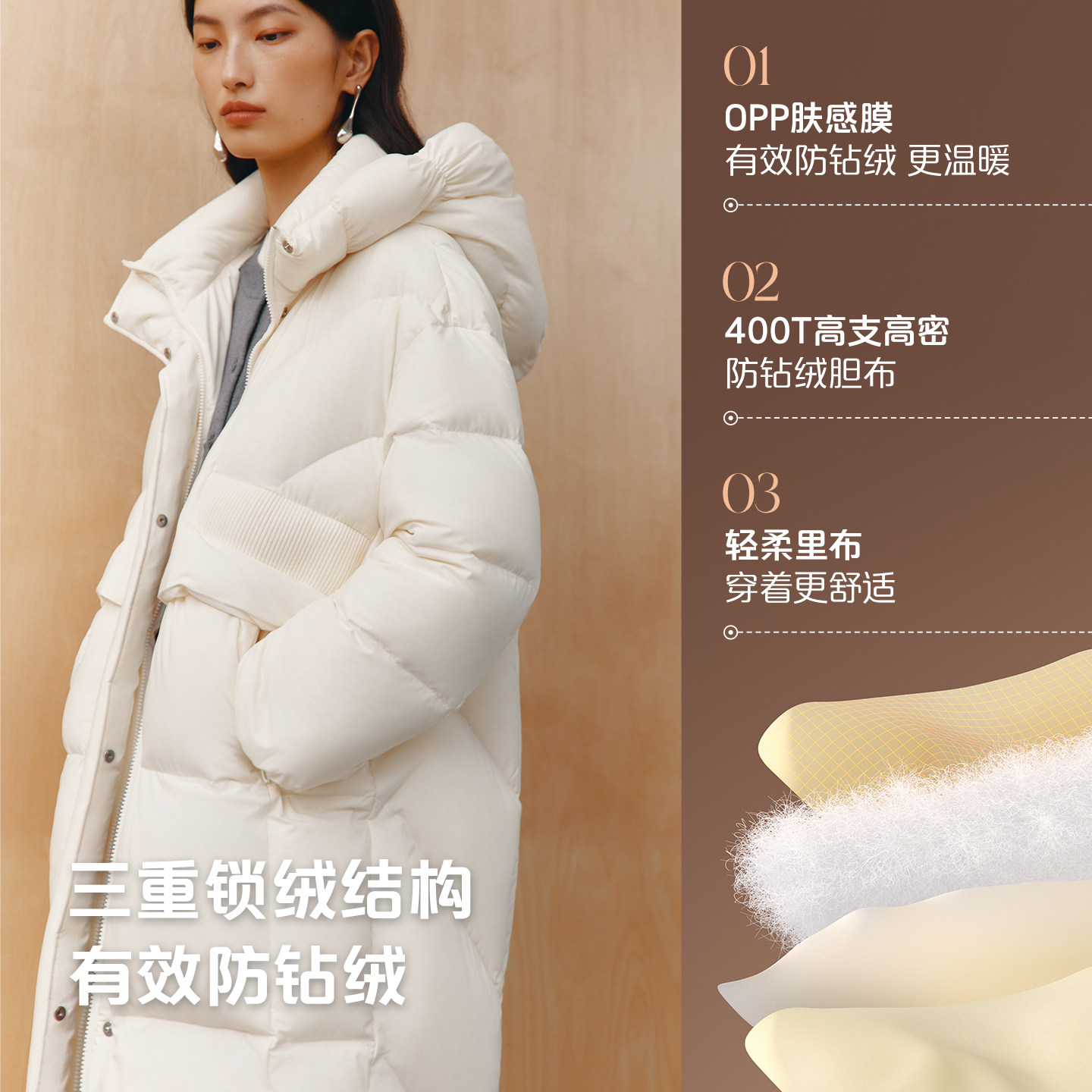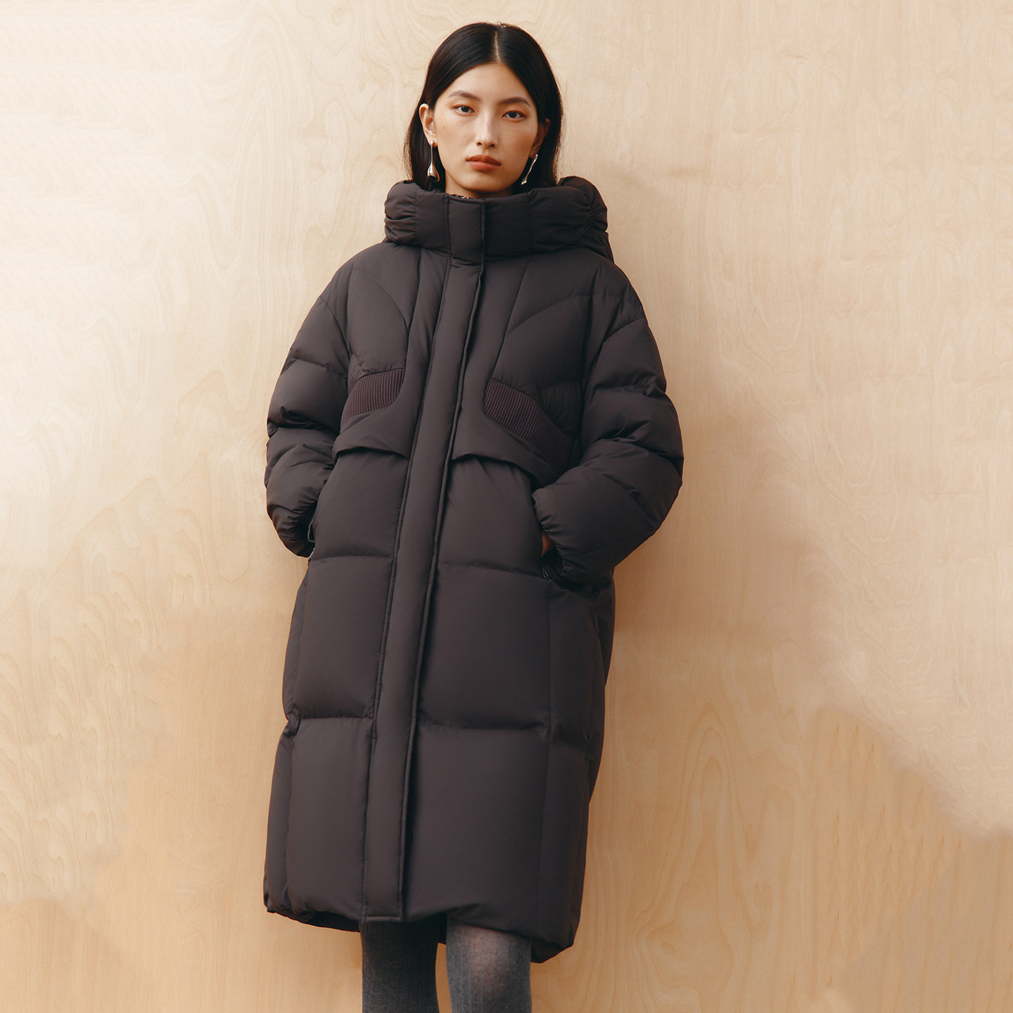 艾莱依2025新款泡芙羽绒服女士时尚廓形显瘦加厚保暖连帽长款外套