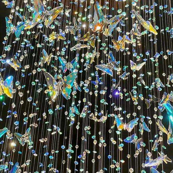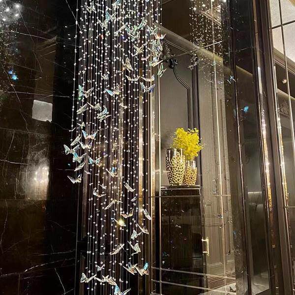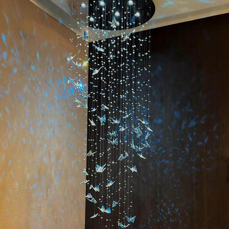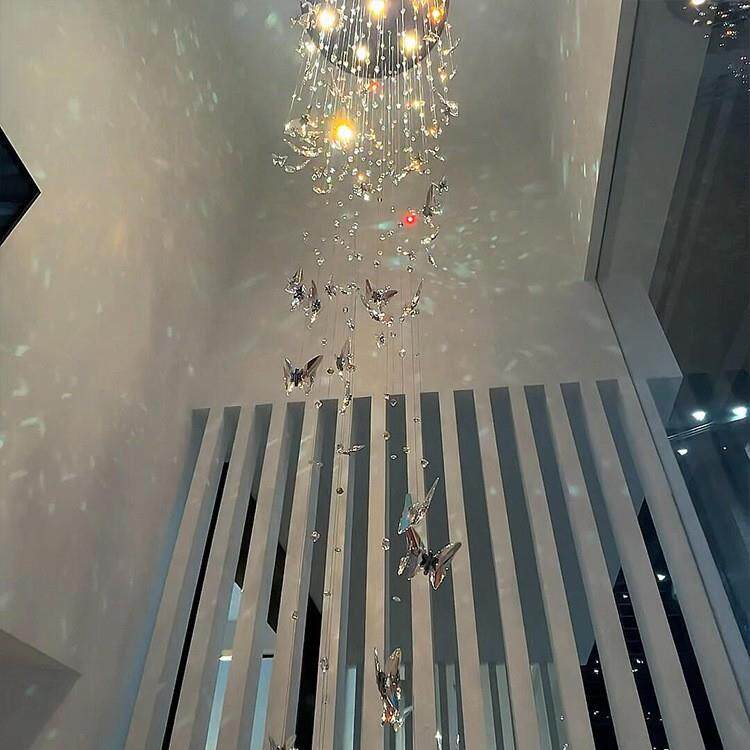 loft公寓造型楼梯吊灯复式楼中空客厅主灯别墅大厅水晶蝴蝶灯饰