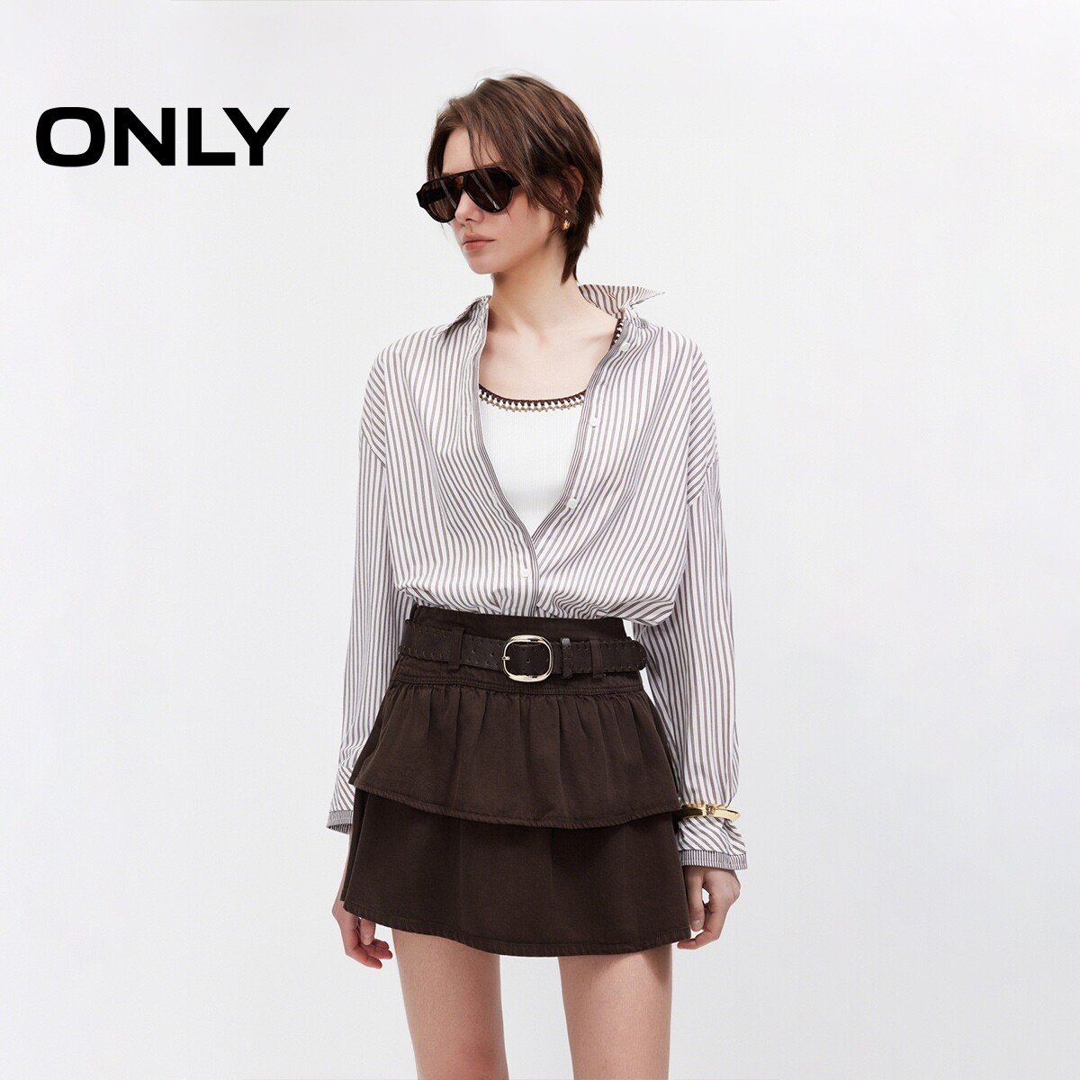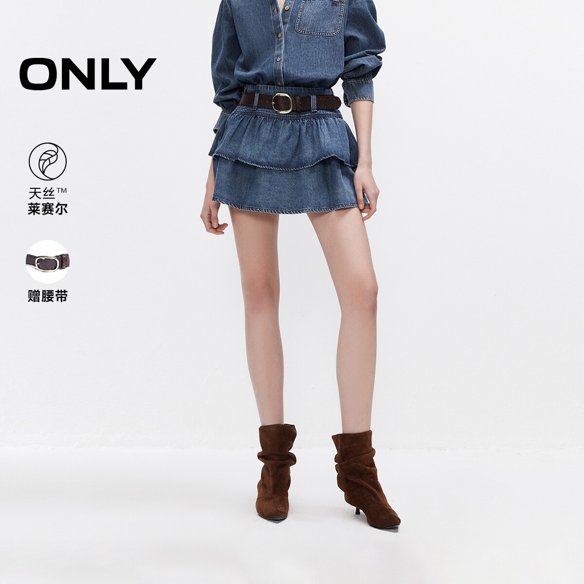 ONLY2026春季新款宽腰带立体多层裙摆拼接蛋糕裙短裙半身裙女