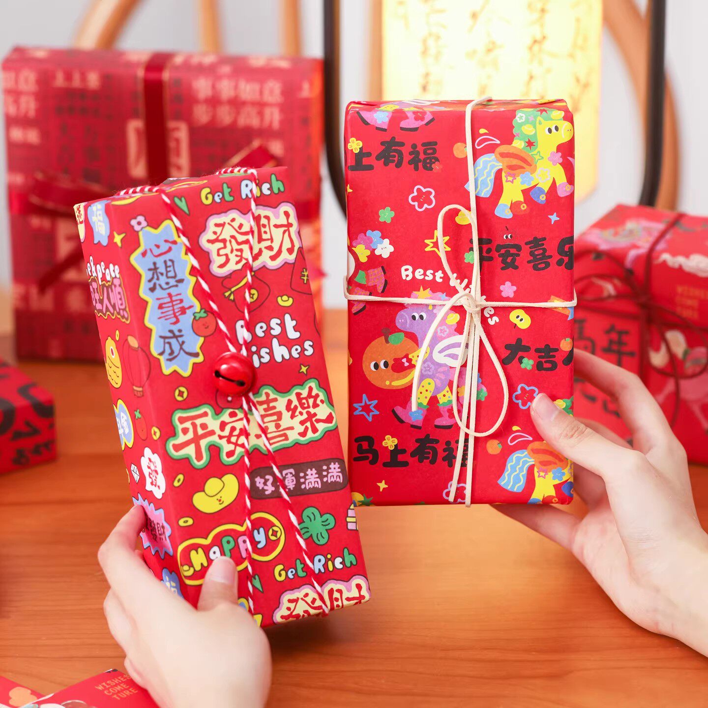 新年礼物包装纸高级感马年春节新春礼盒包装材料礼品纸大尺寸儿童元旦年会包糖果的纸红色国风复古打包纸大张