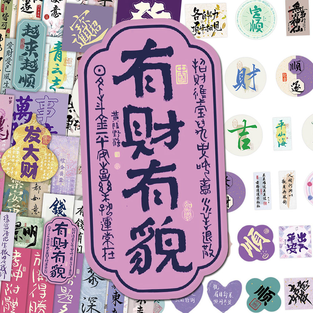 210张古风书法小纸条贴纸中国风高颜值好运祝福语文字diy桌面贴画
