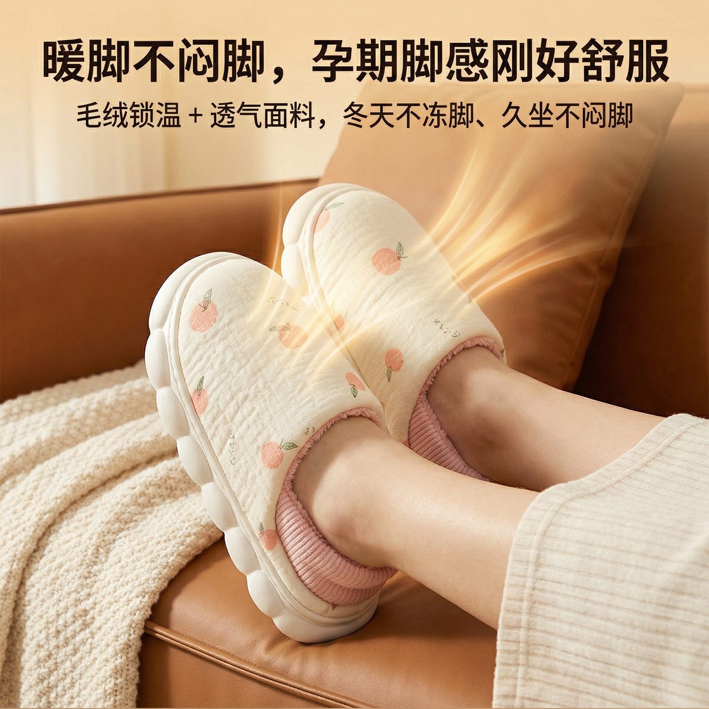 红豆踩屎感棉拖鞋女士秋冬季室内家居2025新款毛绒保暖情侣棉拖男