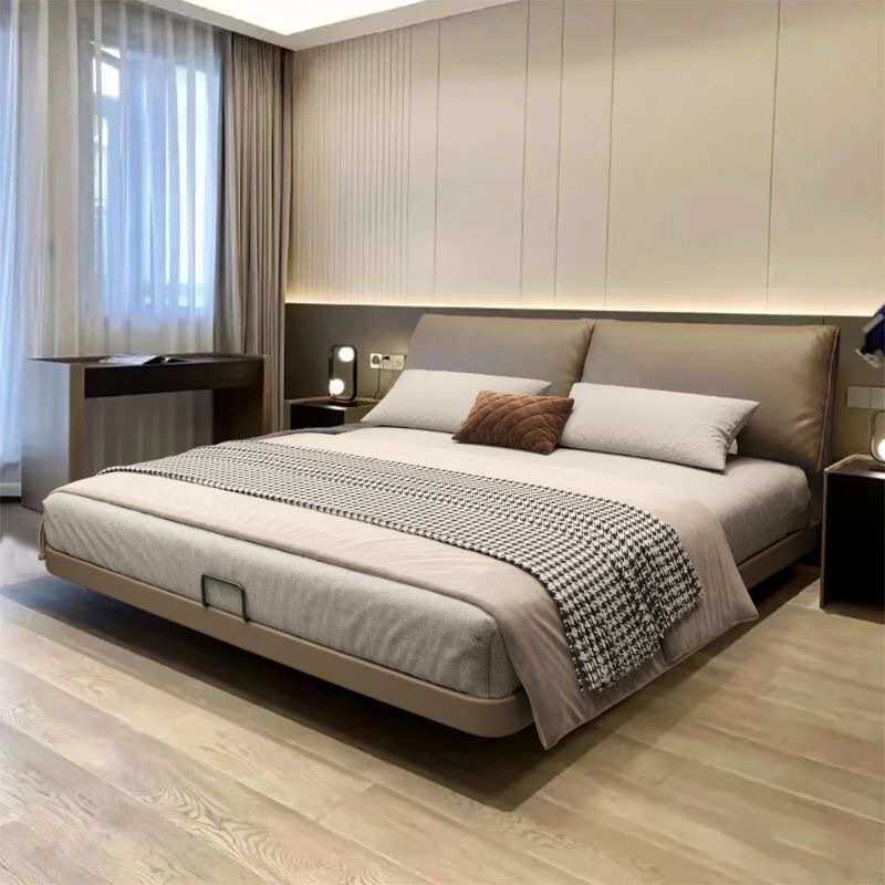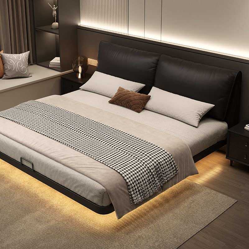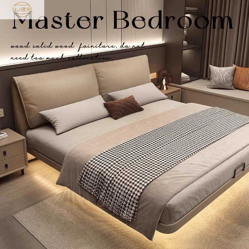 现代简约悬浮大象耳朵皮艺床主卧意式极简大床双人真皮大象耳朵床